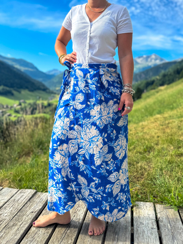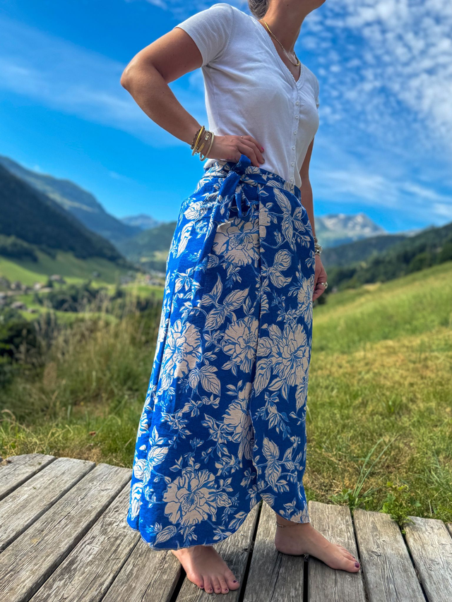 Cyane se distingue par son imprimé fleuri classique et intemporel, sublimé par un bleu intense qui capte la lumière. Son motif finement dessiné, apporte une touche d’élégance à cette jupe lumineuse et facile à porter.